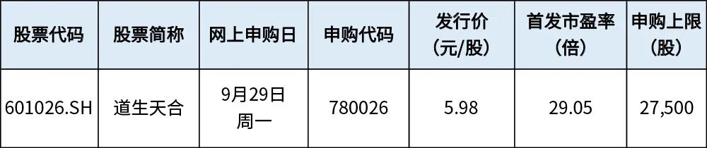 根据目前安排,下周将迎来国庆长假,节前还有1只沪市主板新股可申购。拟于下周一(9月29日)申购的道生天合是全球风电叶片用材料领域龙头供应商。根据中国石油和化学工业联合会及其环氧树脂及应用专业委员会出具的说明函,2022年至2024年公司连续三年“风电叶片用环氧树脂系列”销量位居全球第一,2022年至2024年公司“风电叶片用结构胶”销量位居国内第二、全球第三。