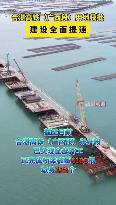 目前,合湛铁路广西段先开段已全面开工建设,累计完成桥梁桩基4199根、墩身128个,工程建设稳步有序推进。