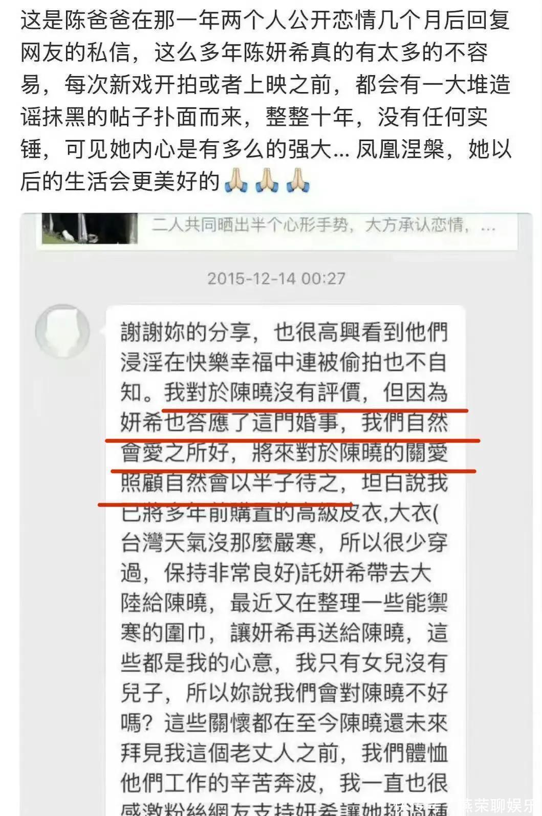 那会儿全网都在猜:一定是陈妍希惹出啥乱子了。可实际上,陈晓常年待在剧组里,陈妍希一个人带娃,还得往返台湾和内地。连孩子的幼儿园家长会,都是她一个人去参加。现在老粉又站出来澄清了,大家对他们离婚的真相也算是比较明白了。和那些谁对谁错的说法比起来,或许早就埋下的裂痕,已经决定了最终的结局。陈妍希给众多女生提了个醒其实陈晓和陈妍希离婚之后的表现差别,早已经在他们的成长经历中埋下了伏笔。陈妍希可以说是个典型的“富养学霸”,她的爸爸可是台湾的外贸大亨。虽然父母早些年就离了婚,不过对她的培养可一点没落下。高中时就把她送到美国张罗,之后又凭借自己努力考上全球排名前二十的南加州大学,主修行销,副修美术,算得上是个文武双全的才女了。