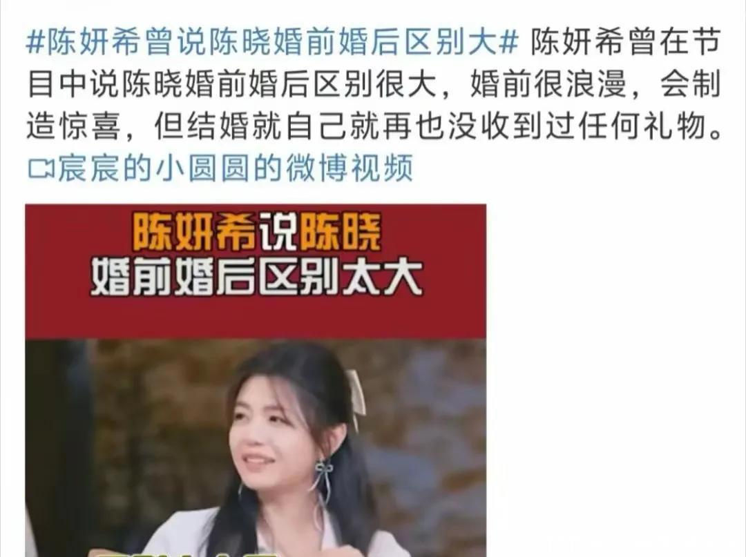 从那时起,关于他们婚变的传闻就没停过。到了2020年,有人拍到陈晓没有戴婚戒;到了2023年,又传出两人已经分开居住。在陈妍希的生日那天,陈晓的微博上完全没有任何表示。