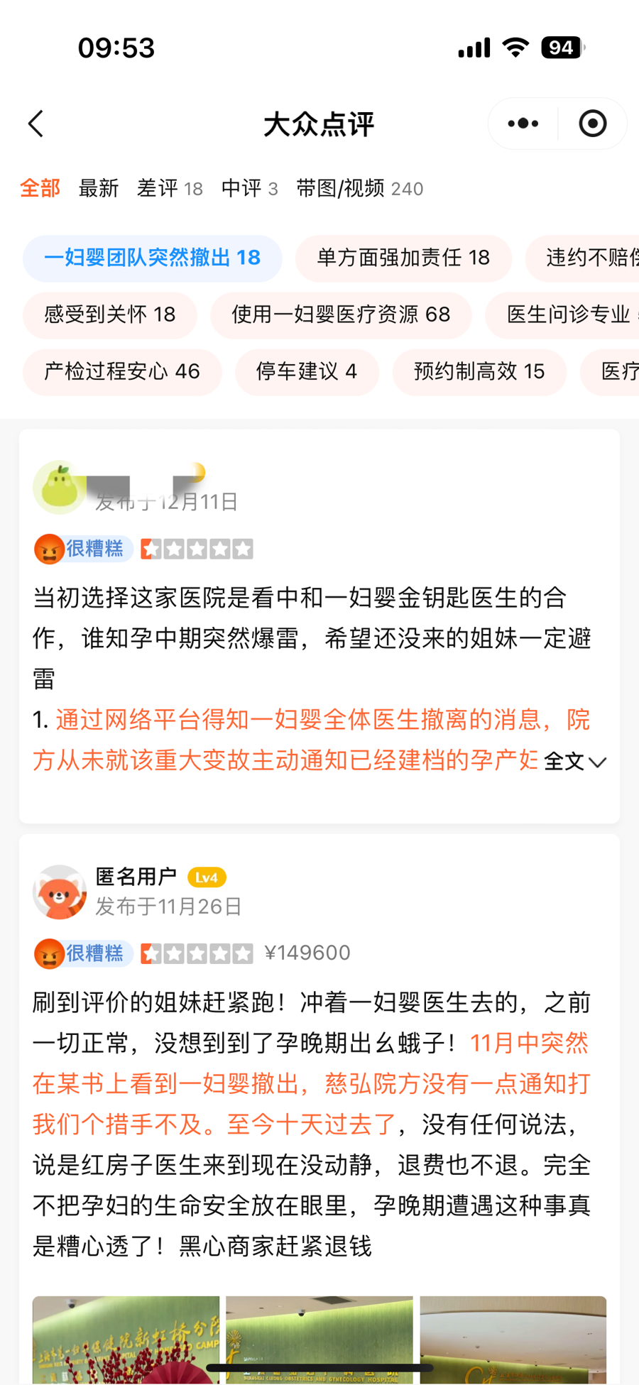 在众人强烈要求下,院方人员才出面承认一妇婴团队已撤出,但后续安排“还未确定”。“他们反复说一妇婴撤得很突然,他们院方也是措手不及。”当时现场有孕妇已预约下周由一妇婴主任医师主刀剖宫产,更多人则已进入孕晚期。预产期不足一月的沈女士倍感无助:“产检有严格的时间窗口,我现在该找谁?”她认为,慈弘未提前告知、毫无沟通的做法,严重侵害了孕妇的医疗权益,更增加了妊娠期的身心负担。
